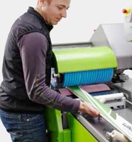 Výměna brusných pásů je díky pákovému mechanismu a automatickému centrování otázkou jen několika vteřin. Diagonální konstrukce umožňuje velmi snadné čištění stroje.